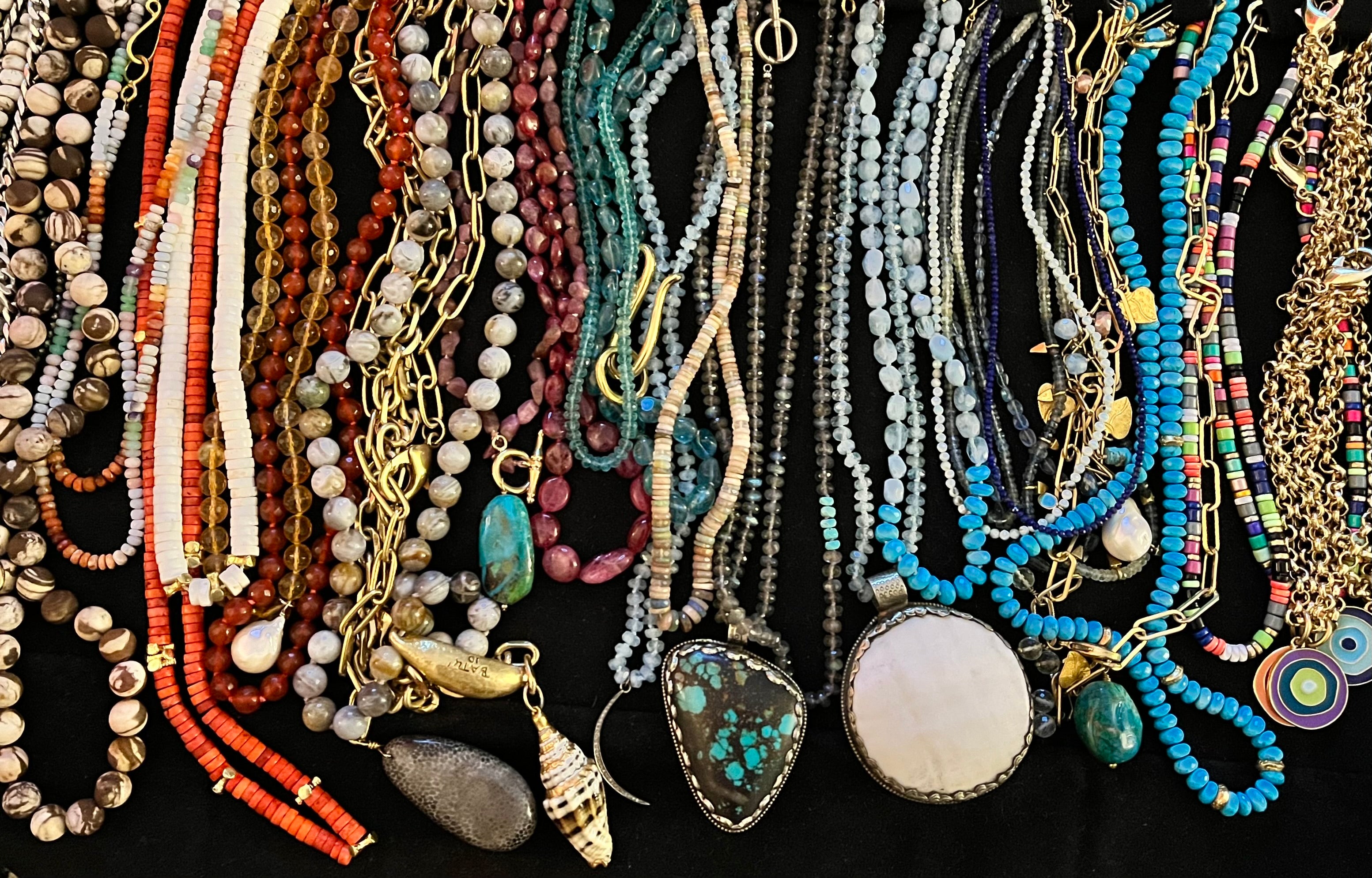 I never know what will inspire a new piece; the colors I see in nature or a beautiful strand of stones begging to be transformed.