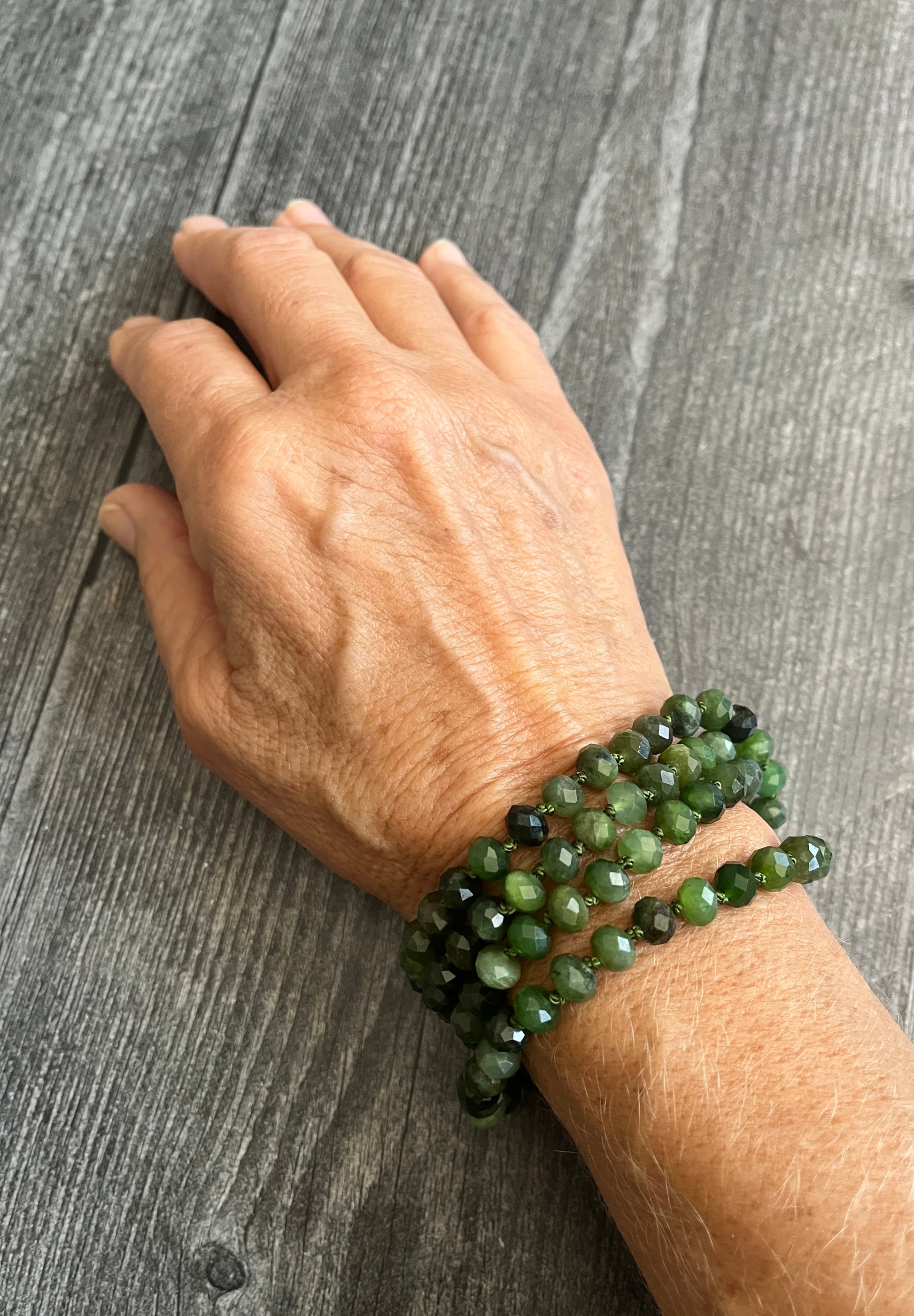 Hand knotted on silk and joined together with a sterling silver clasp