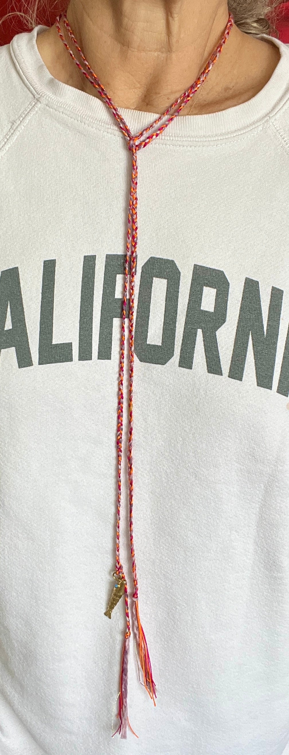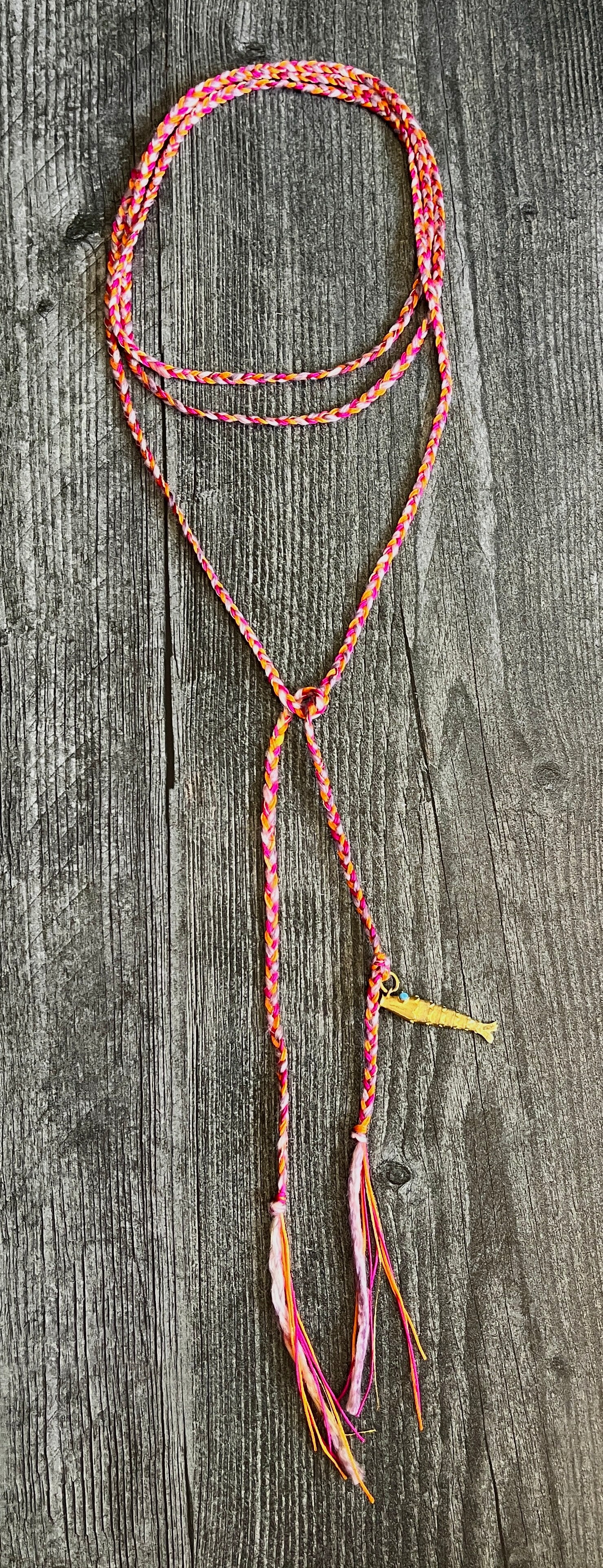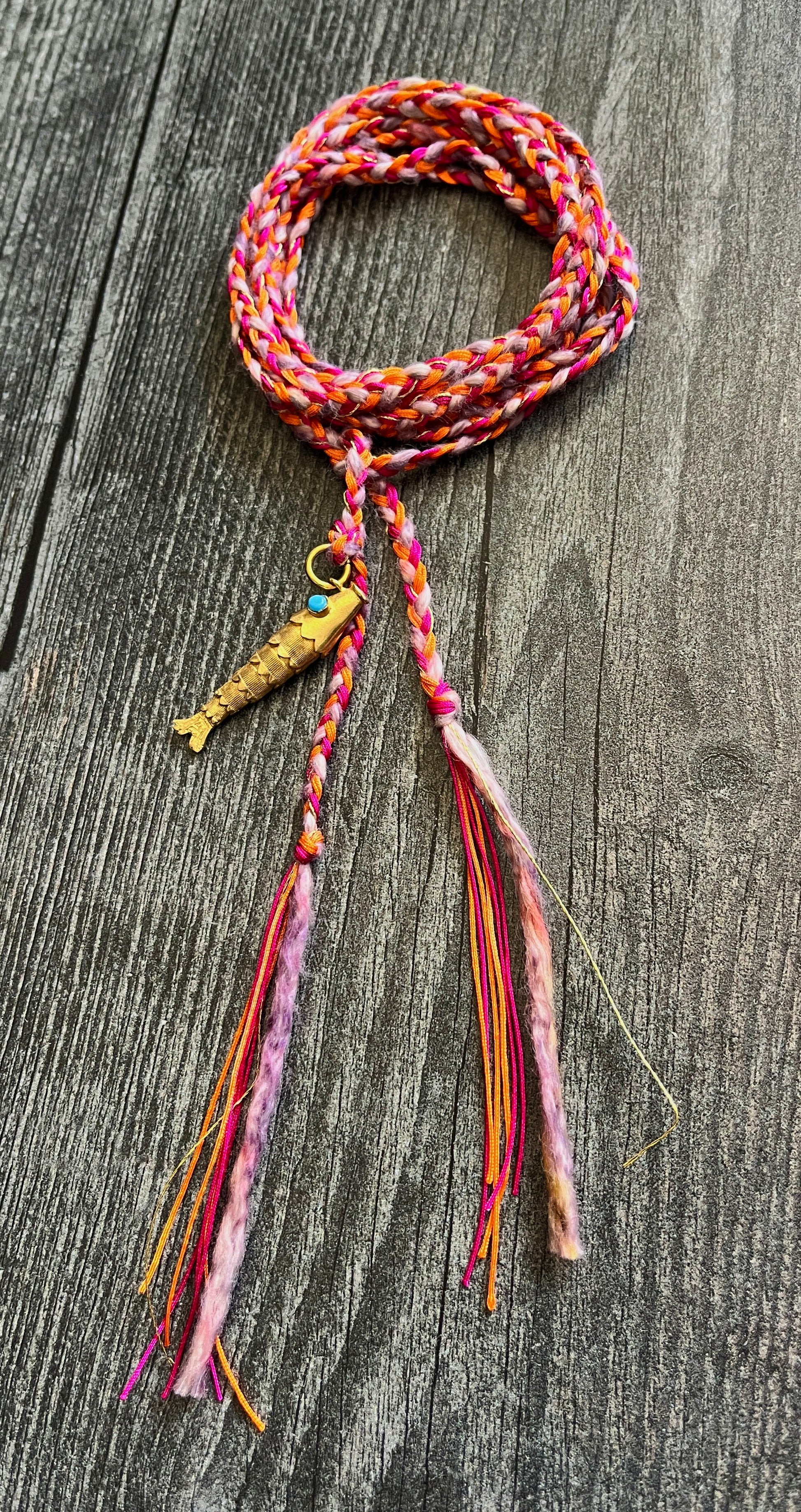 strands of woven nylon & cotton are hand braided, with a vintage 18k gold dipped articulating fish