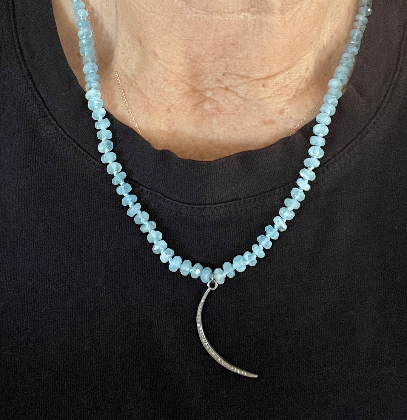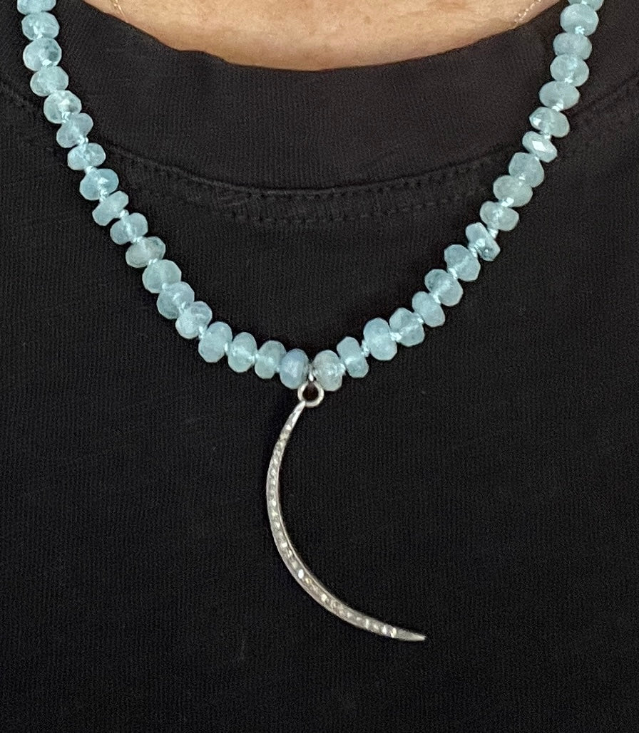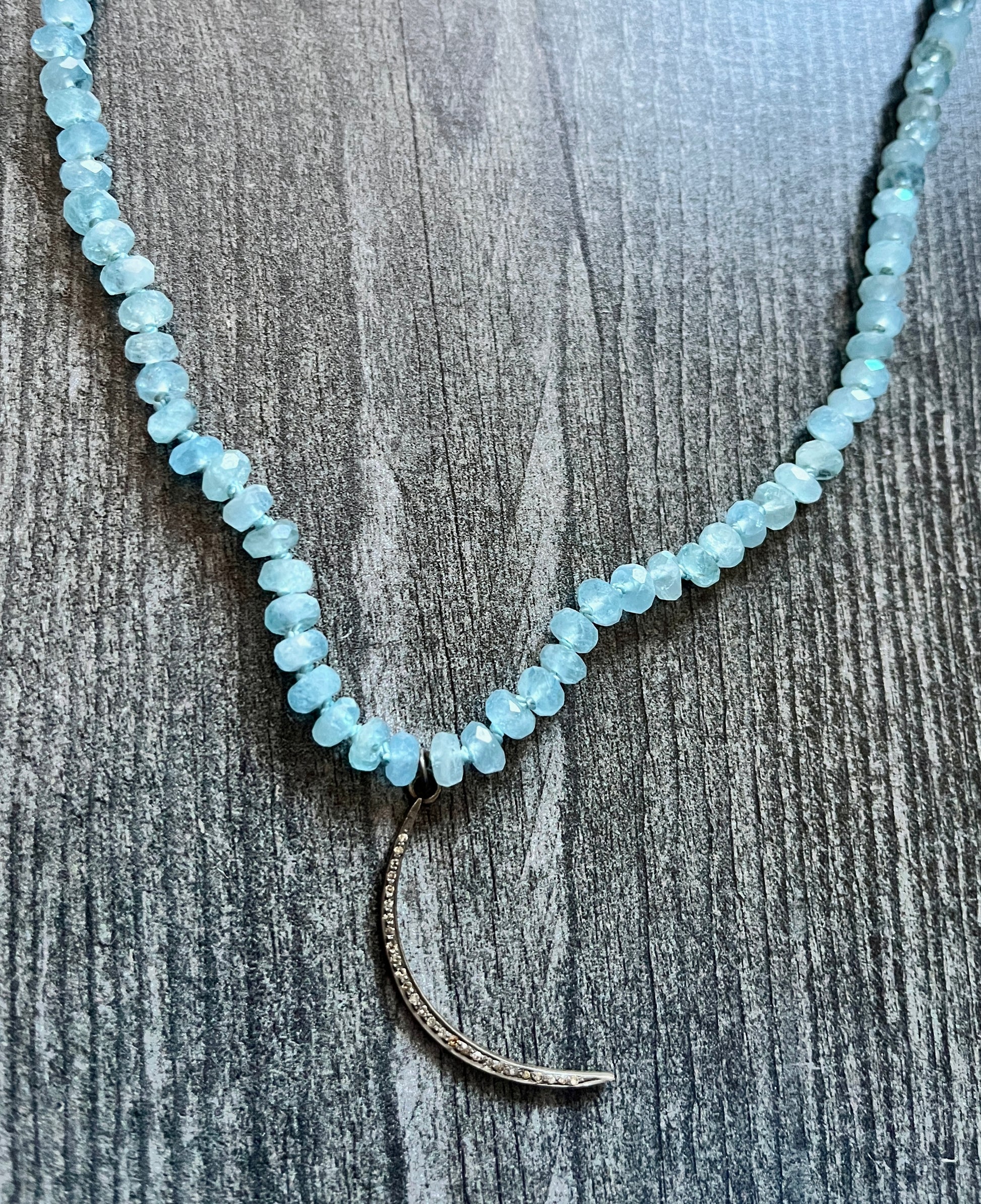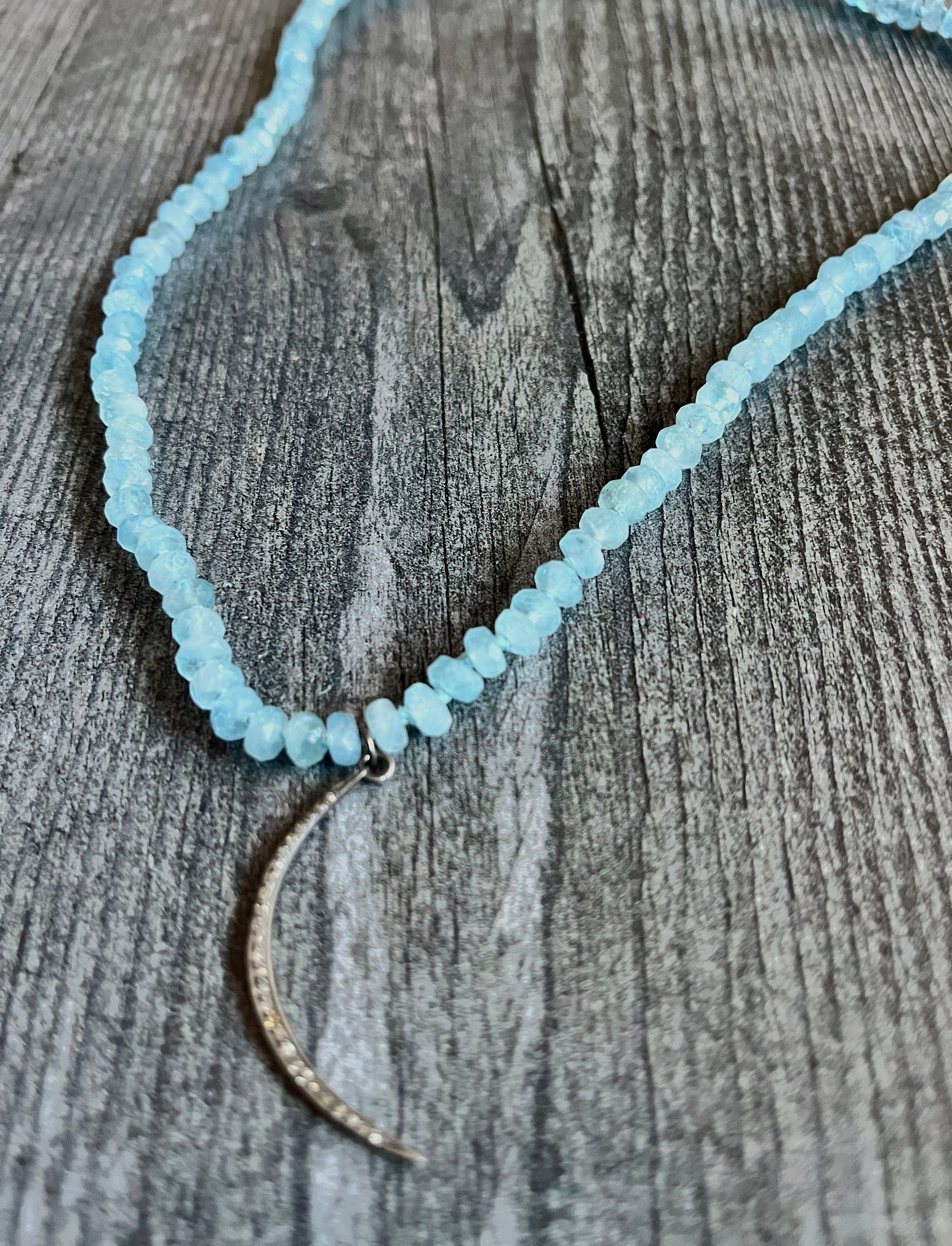 the aquamarine evokes the ocean being drawn by the gravitational pull of the diamond crescent moon, and the wearer will hopefully feel the beautiful connection between the two