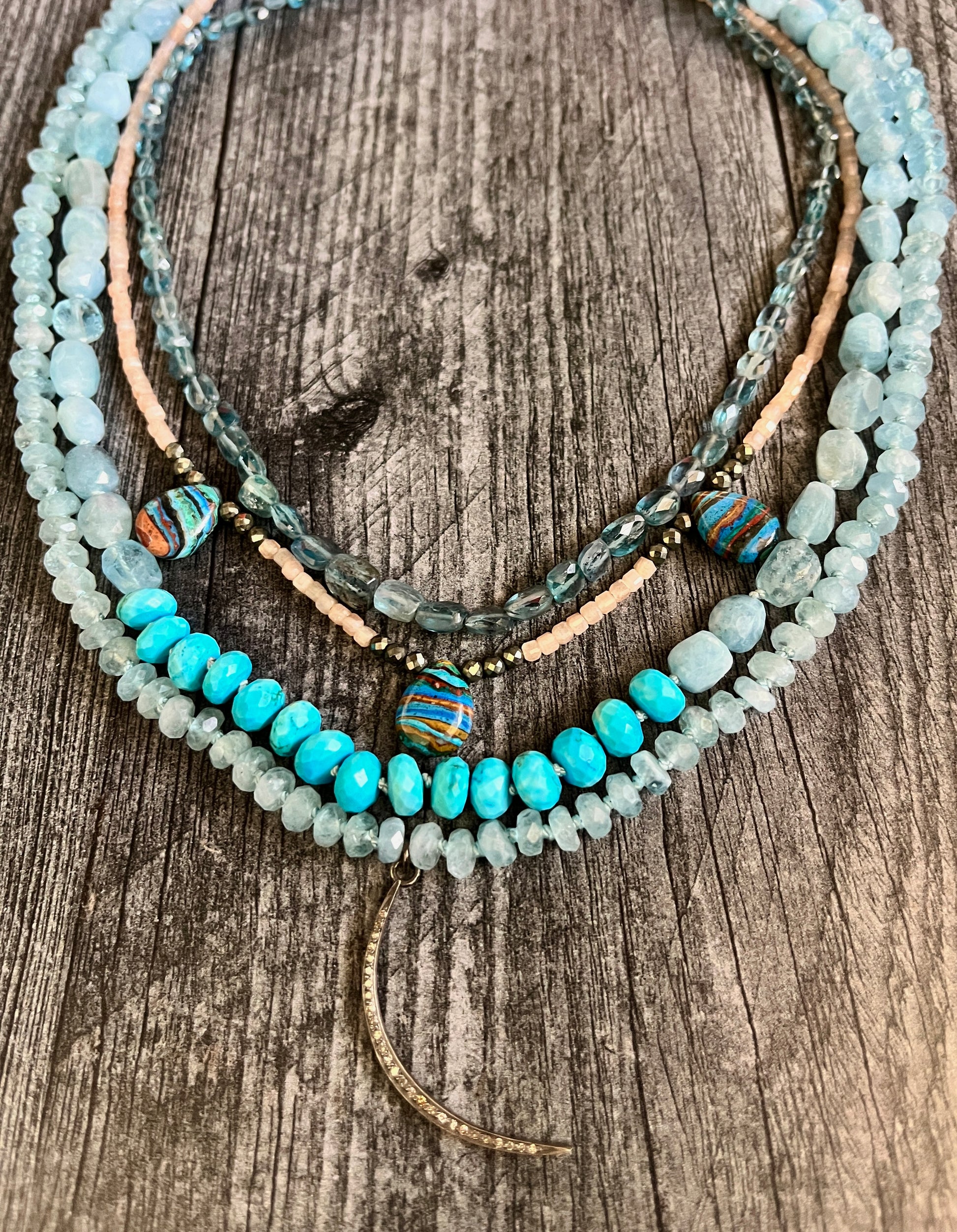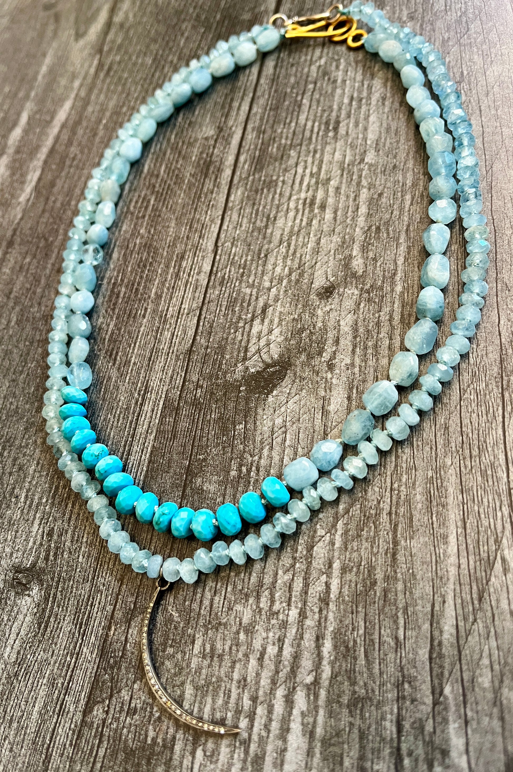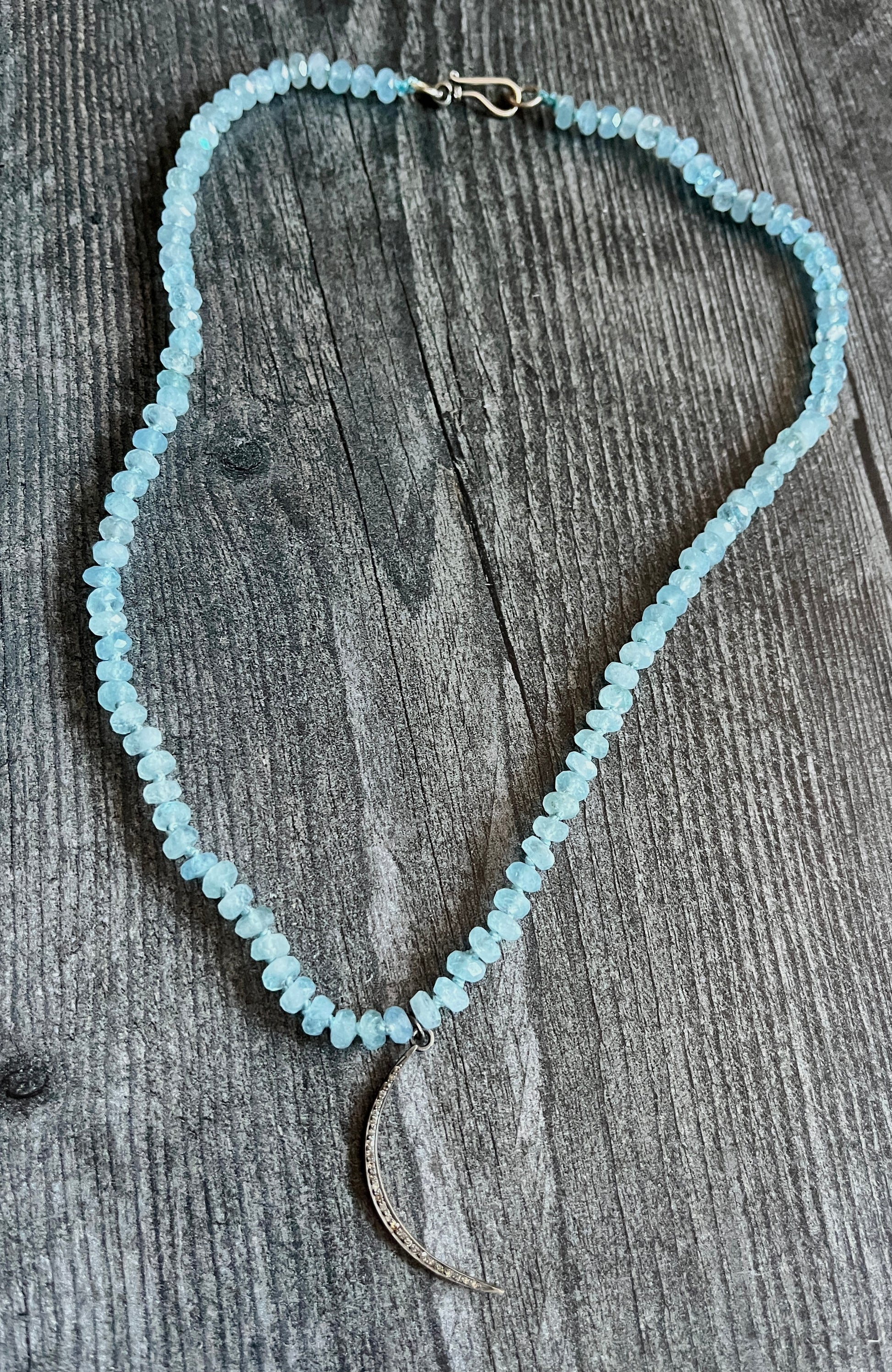 the aquamarine evokes the ocean being drawn by the gravitational pull of the diamond crescent moon, and the wearer will hopefully feel the beautiful connection between the two